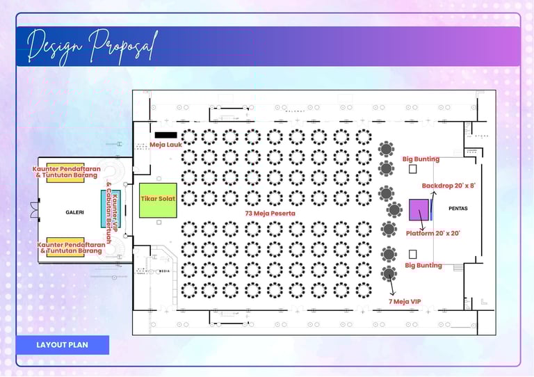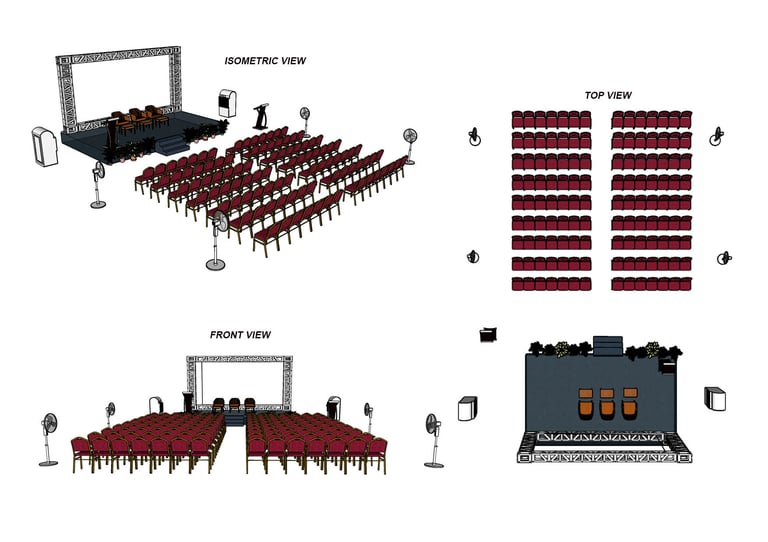 Whether you're planning a corporate conference, an exhibition/expos, product launch or a social gathering, our team of skilled professionals will work closely with you to create a customized setup that reflects your vision, style, and objectives. From layout design to logistic rental, décor, and signage, we handle every aspect of the setup process with precision and care.